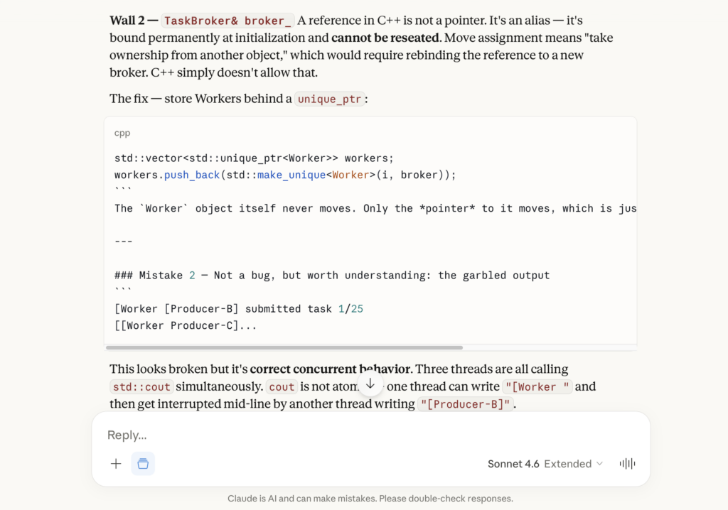 What makes Claude stand out is how it handles long, technical conversations. I can paste an entire assignment specification and discuss it step by step without the context falling apart. It’s also noticeably better than ChatGPT at admitting when it’s unsure about something, which matters a lot when you’re studying — wrong information is worse than no information.